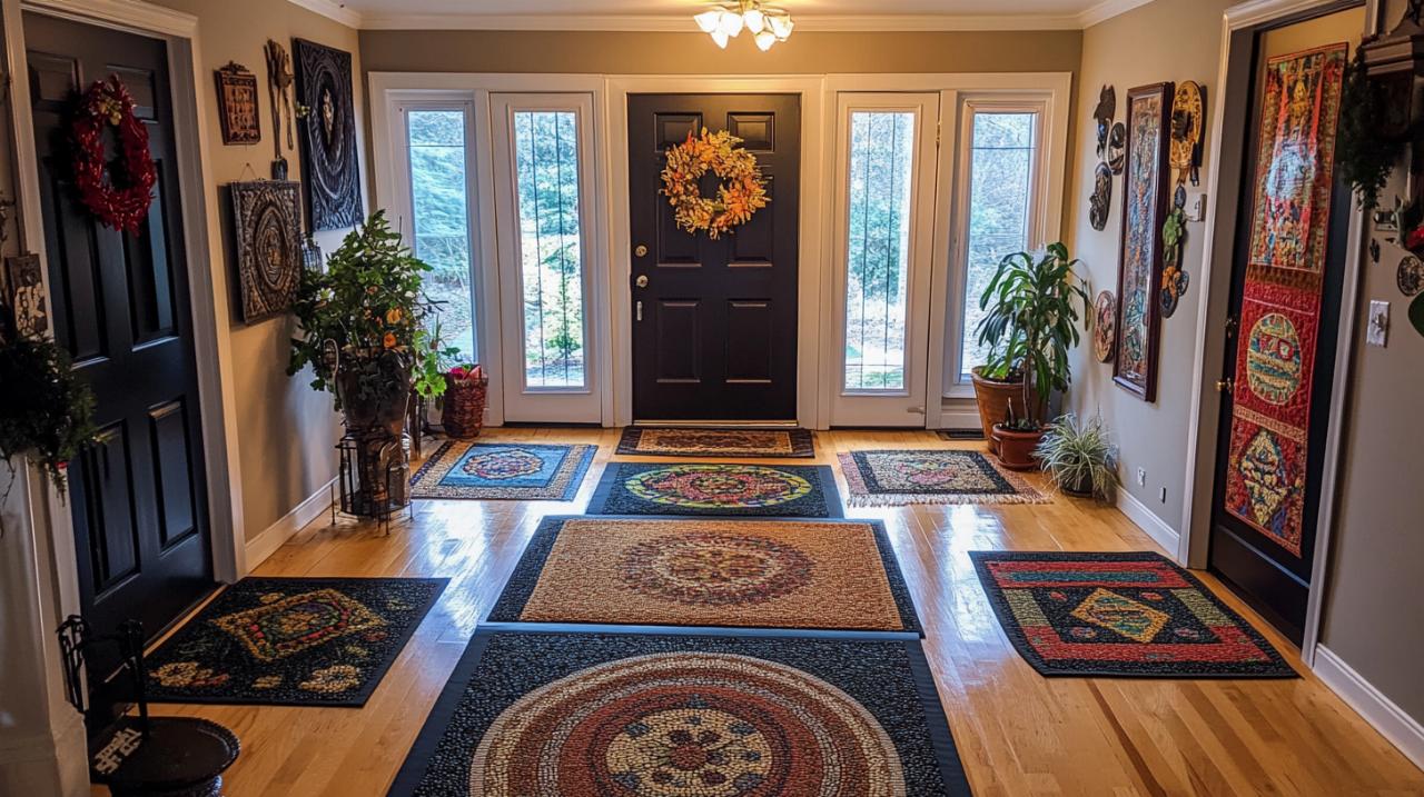 Les motifs géométriques séduisent quant à eux les amateurs de design épuré et structuré. Lignes droites, cercles, triangles ou formes abstraites créent des compositions visuelles sophistiquées qui apportent du dynamisme sans surcharger l'espace. Cette approche géométrique s'inscrit dans la mouvance minimaliste qui privilégie les formes simples mais percutantes. Les paillassons personnalisés représentent également une option de plus en plus recherchée, permettant d'intégrer des initiales, des noms de famille ou des motifs spécifiques qui reflètent véritablement votre identité.